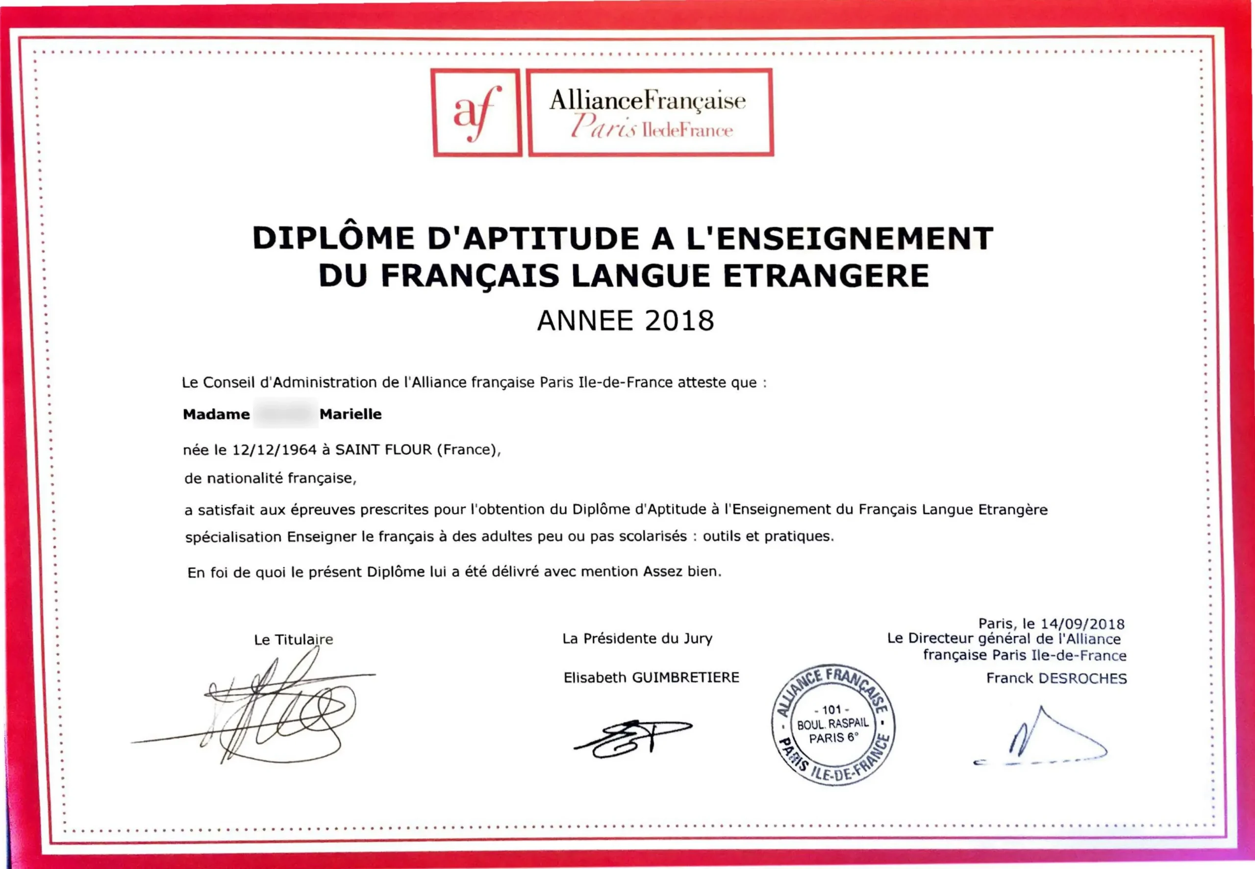 In 2018, I earned my DAEFLE diploma (Teaching French as a Foreign Language) and began teaching adults and international newcomers to France, as well as training fellow educators. I’ve also mentored young teachers and served as an official examiner for the DELF and DALF certifications at the Alliance Française of Lyon.